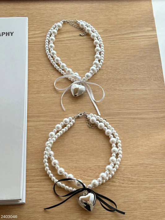 Bold Pearl Ribbon Heart Necklace