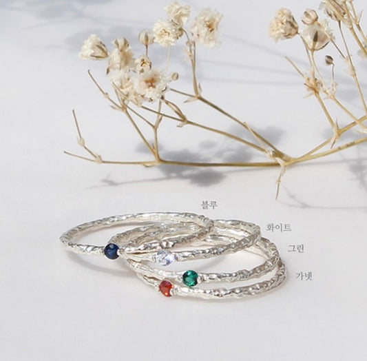 S925 Thin Textured Stone Ring