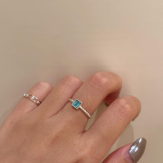 S925 Blue Sqaure Stone Ring