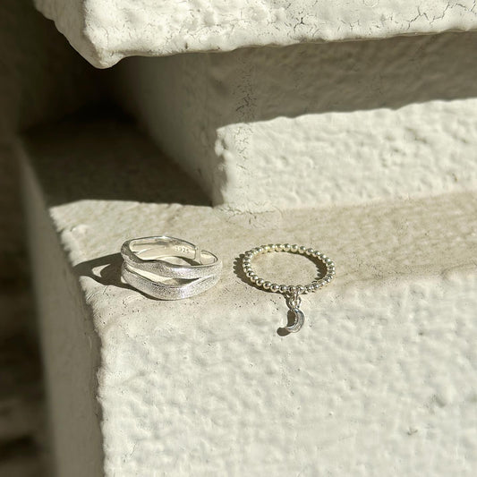 S925 Silver Bead Ring Set